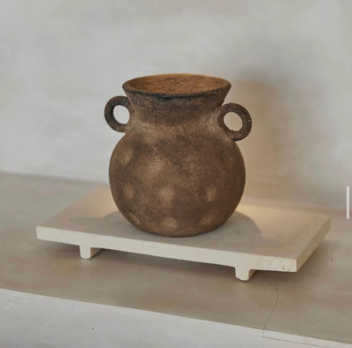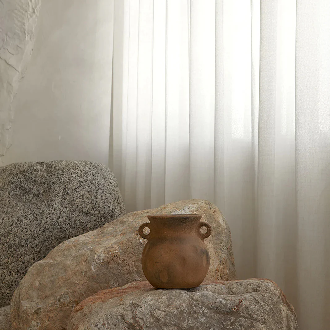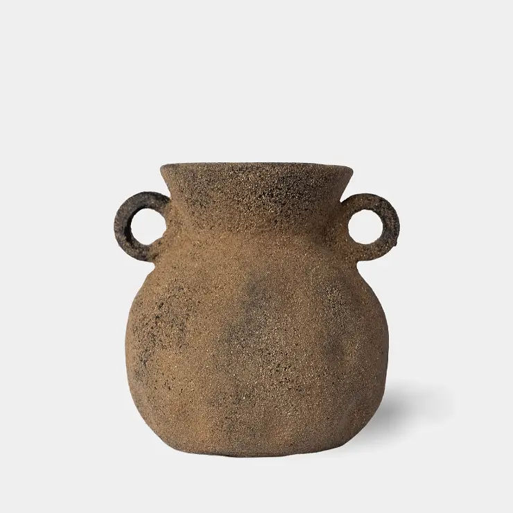 Use: Best styled as decorative pieces. Please refrain from adding water to the vase, as its clay composition is susceptible to damage from moisture.